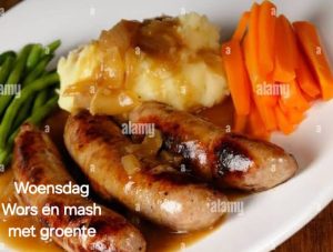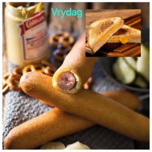 Die volgende spyskaarte is wat min of meer verwag kan word.